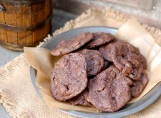 Preheat over to 350 degrees F. In a large bowl add the butter and sugars. Use an electric mixer and beat ingredients until light and fluffy. Add the vanilla and the then egg and beat in well. Add cocoa and mix well. In another bowl, sift together the flour, baking soda and salt. Add to the butter mixture slowly and mix at a low speed. Next add in the chopped chocolate and toffee and combine. Drop dough in rounded teaspoons of dough onto parchment lined baking sheets. Bake for 15 minutes and remove from oven. The cookie will appear soft, let cool on the pan a few minutes and it will then take shape. Remove and cool on wire racks. Store in air tight containers.