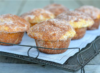 Preheat oven to 350 Degree F. Lightly grease a standard muffin tin. Shift together in a bowl the flour, baking powder, baking soda, salt and nutmeg. Set aside. Using an electric mixer cream butter and sugar together until fluffy. Add one egg at a time, beating to combine. Using a wooden spoon to mix, alternate adding the flour mixture with the milk and buttermilk. Make sure everthing is throughly combined, try not to over mix. Pour the batter evenly, into each muffin tin, filling the cup almost to the top. Bake muffins in the oven for 25 to 30 minutes, until a tester comes out clean. Let cool slightly, and remove muffins from the tin. In a bowl mix the sugar and ground cinnamon together. Use a pastry brush to brush each muffin allover with the melted butter and then roll into the cinnamon sugar mixture. Serve warm or cooled at room temperature